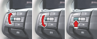 Push the (-) switch down and release it immediately. The set speed will decrease by 1 km/h increments.To decrease the set speed quickly, push and hold th (-) switch. The set speed will decrease in increments of 10. If the cluster speed unit is mph, it will decrease in multiples of 5.