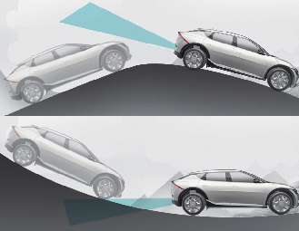 Blind-Spot Collision-Avoidance Assist may not operate properly when driving on a slope. The function may not detect the vehicle in the next lane or may incorrectly detect the ground or structure.