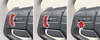 Push the (+) switch up or (-) switch down and hold it. The speed will increase or decrease to the nearest multiple of 10 (multiple of 5 mph) at first, and then increase or decrease by 10 km/h (5 mph).