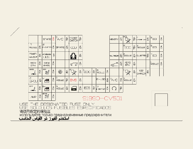 Inside the fuse/relay panel covers, you can find the fuse/relay label describing fuse/relay name and capacity.