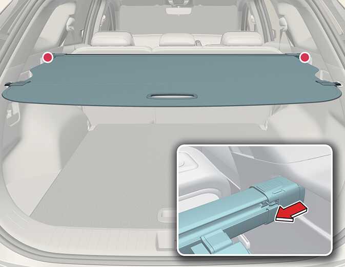 To use the cargo security screen, pull the handle backward and insert the edges into the slots.