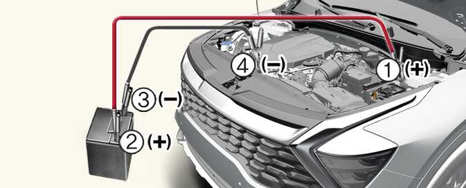 Do not allow the (+) and (-) jumper cables to touch. It may cause sparks.