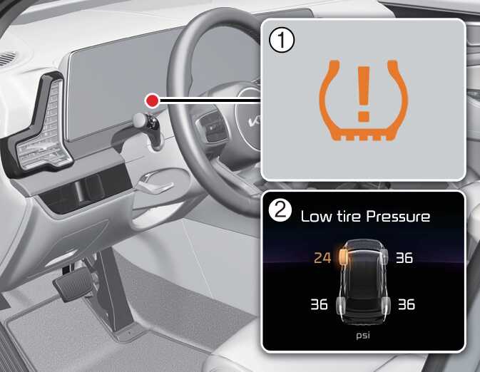 Low tire pressure position telltale (Shown on the LCD display)