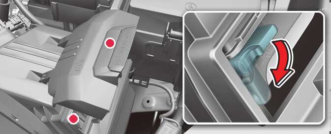 Pull up the lever (1) on the air cleaner cover and release the lock.
