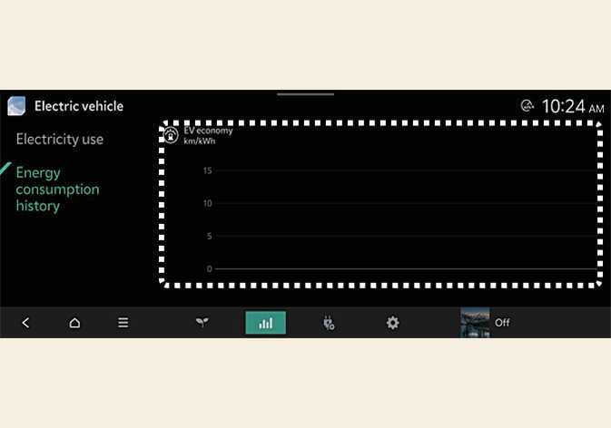 Es ist möglich, den Verlauf des Energieverbrauchs mit dem Datum und der Entfernung der letzten Fahrt zu überprüfen. Das Symbol wird bei der effizientesten Energieverbrauchsaufzeichnung angezeigt. |