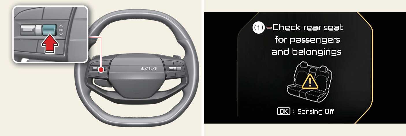 Wenn Sie den Rücksitzalarm nicht verwenden möchten, drücken Sie die OK-Taste am Lenkrad, wenn der erste Alarm auf dem Kombiinstrument angezeigt wird. Dadurch wird die zweite Warnung einmal deaktiviert.