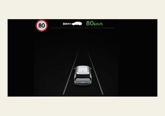 Selbst nach Ändern der eingestellten Geschwindigkeit gemäß dem Tempolimit der Straße kann das Fahrzeug immer noch schneller als die Geschwindigkeitsbegrenzung gefahren werden. Betätigen Sie gegebenenfalls das Bremspedal, um die Fahrgeschwindigkeit zu verringern.