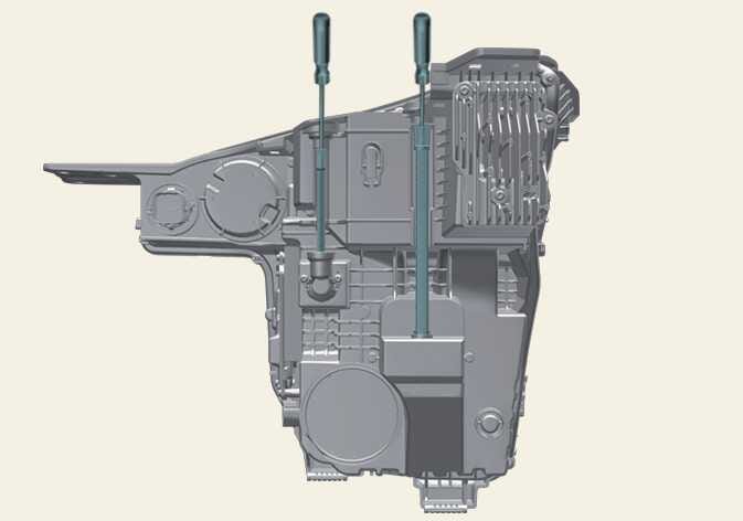 Zeichnen Sie vertikale Linien (die durch die jeweiligen Mittelpunkte der Scheinwerfer führen) und eine horizontale Linie (die durch die Mittelpunkte der Scheinwerfer führt) auf die Leinwand.
