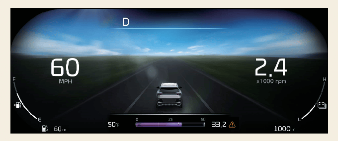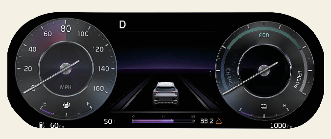 Type A is the basic theme of the full LCD type cluster and provides different graphic styles depending on drive mode.