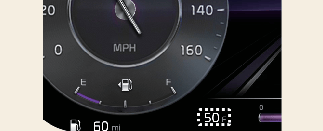 If the level of the remaining fuel is more than three-quarters, more than 0.8 gallons (3 liters) of fuel must be refilled for the fuel gauge to change. In other cases, more than 1.6 gallons (6 liters) of fuel must be refilled to change the fuel gauge.