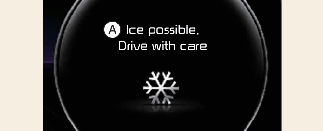 If the icy road warning appears while driving, you should drive even more attentively and safely refraining from speeding, rapidly accelerating, sudden braking or sharp turning, etc.