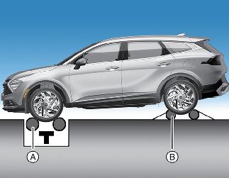 Place the front wheels on the roll tester (A) for a speedometer test.