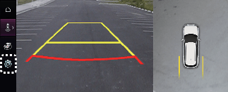 Rear view parking guidance is displayed in the rear view when the Parking guide in rear view is selected.