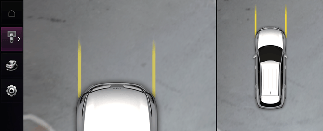 Parking distance warning is displayed on the right side of the Surround View Monitor top view screen when the Parking distance warning is selected.