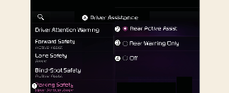 ) for more than 2 seconds to turn Rear Active Assist or Rear Warning Only on or off.