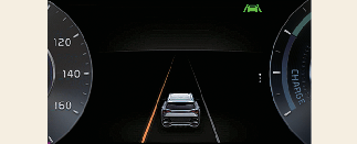 When lane markings (or road edges) are detected, the lane lines on the cluster will change from gray to white and the green (