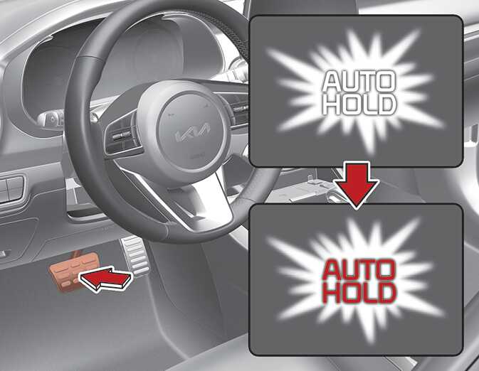 브레이크 페달에서 발을 떼어도 차량은 정지 상태를 계속 유지합니다.