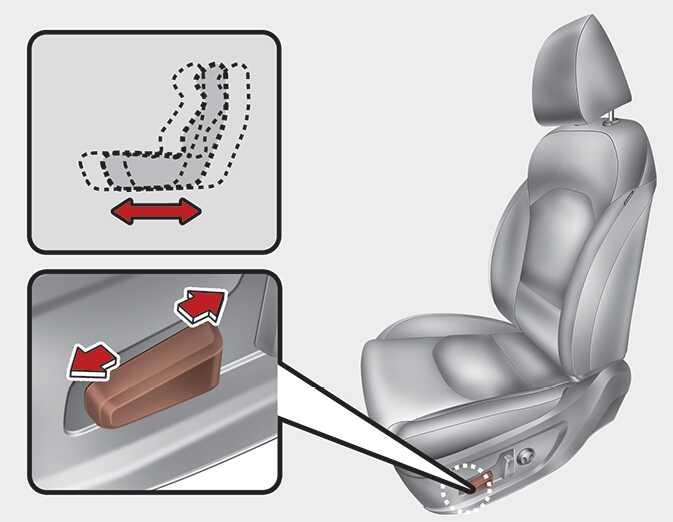 조절 스위치를 앞 또는 뒤로 움직이면 좌석이 앞 또는 뒤로 이동합니다. 알맞은 위치에 이르면 스위치에서 손을 놓으십시오 .