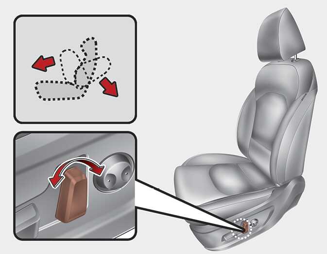 조절 스위치 조작 시 필요 이상의 힘을 스위치에 가하면 다른 부위까지 좌석이 움직일 수 있습니다. 적당한 힘을 가하여 조절하십시오.