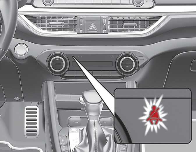 동승석 안전벨트를 착용하지 않았거나 착용한 후 주행 중 안전벨트를 풀면 차량의 속도가 20 km/h 미만일 때는 경고등이 켜지며, 차량의 속도가 20 km/h 이상일 때는 경고등이 깜빡이고 경고음이 100초 동안 울립니다.