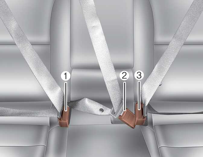 왼쪽 또는 오른쪽 안전 벨트를 중앙 안전 벨트 버클에 강제로 넣지 마십시오. 뒷좌석 중앙 안전 벨트는 중앙 안전 벨트 버클에 체결하십시오. 그렇지 않고 부적절하게 체결된 안전 벨트는 제대로 된 보호장치 역할을 할 수 없습니다.