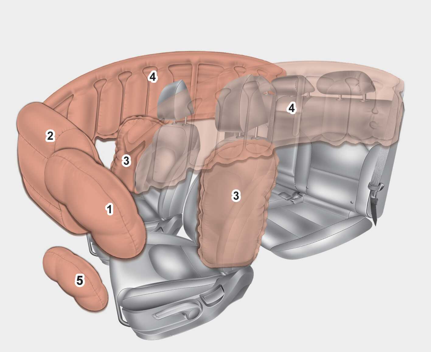 에어백(보조 구속 장치) OBD031028 위의 그림은 실제 차량에 적용된 에어백의 형상과 다를 수 있습니다. 운전석 에어백 동승석 에어백 사이드 에어백 커튼 에어백 운전석 무릎 에어백