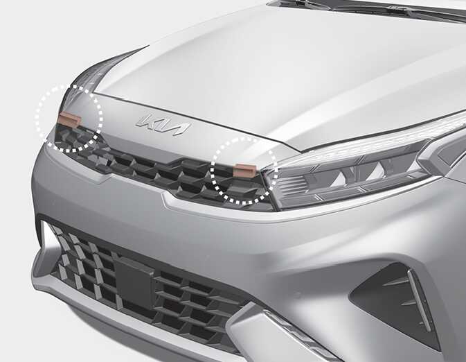 정면 충돌 센서 또는 측면 충돌 센서 부위에 임의의 충격을 가하지 마십시오. 각 센서에 영향을 받는 에어백이 작동될 수도 있습니다.