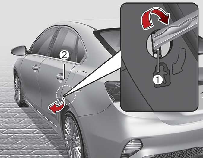 뒷도어를 열때는 차밖에서 손잡이(2)를 당겨 여십시오.