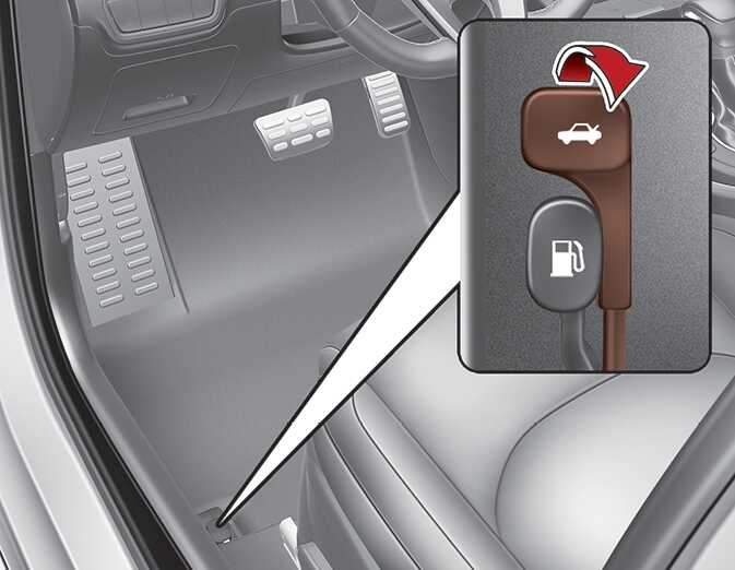 실내에서는 트렁크 열림 레버를 당기면 트렁크가 열립니다.