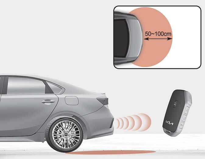 트렁크 후방 약 50~100 cm 이내에 스마트 키가 감지되면 웰컴 경보가 작동하면서 기능이 작동됩니다.