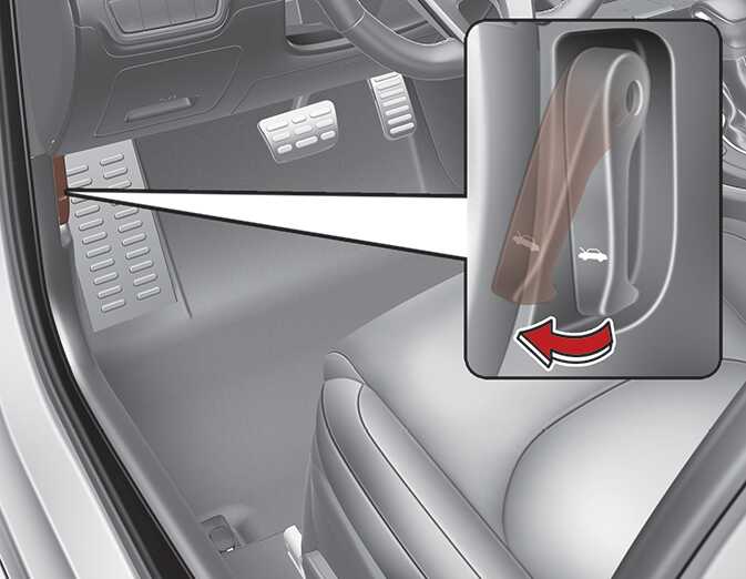 엔진 후드 열림 레버를 당기십시오. 엔진 후드가 조금 열립니다.