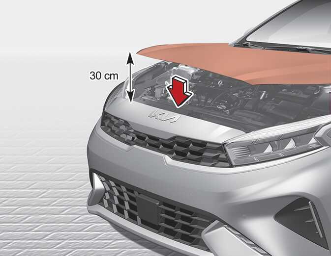 엔진 후드를 약 30cm 정도의 높이까지 내린 후 손을 놓으면 닫히게 됩니다.
