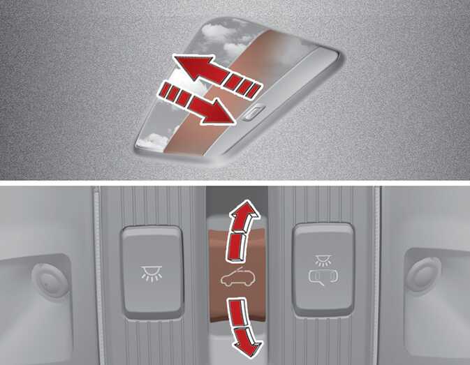 선루프 스위치를 뒤쪽으로 누르면 선루프 글라스와 선블라인드가 열리고 스위치를 앞쪽으로 누르면 글라스만 닫힙니다.