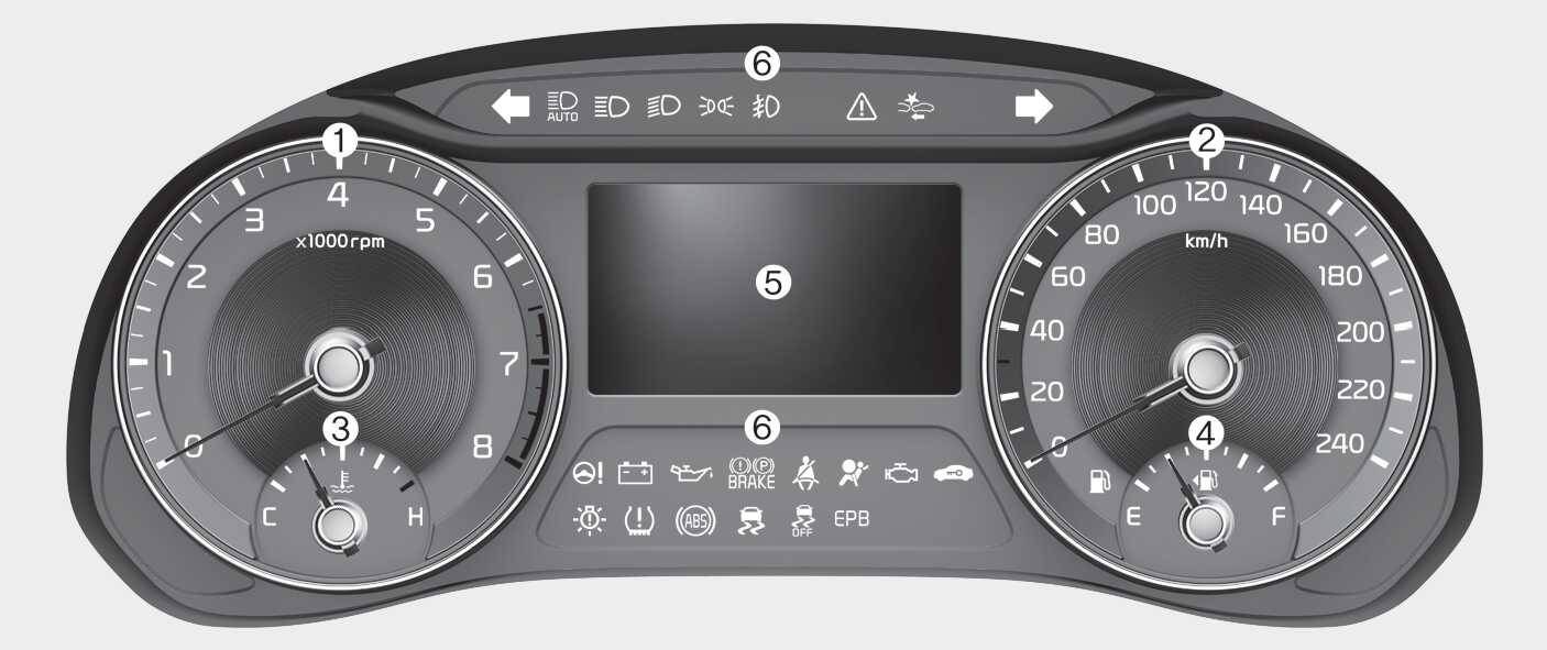 자세한 내용은 실 차량에 적용된 계기판과 뒷장 설명 부분의 내용을 참고하십시오.