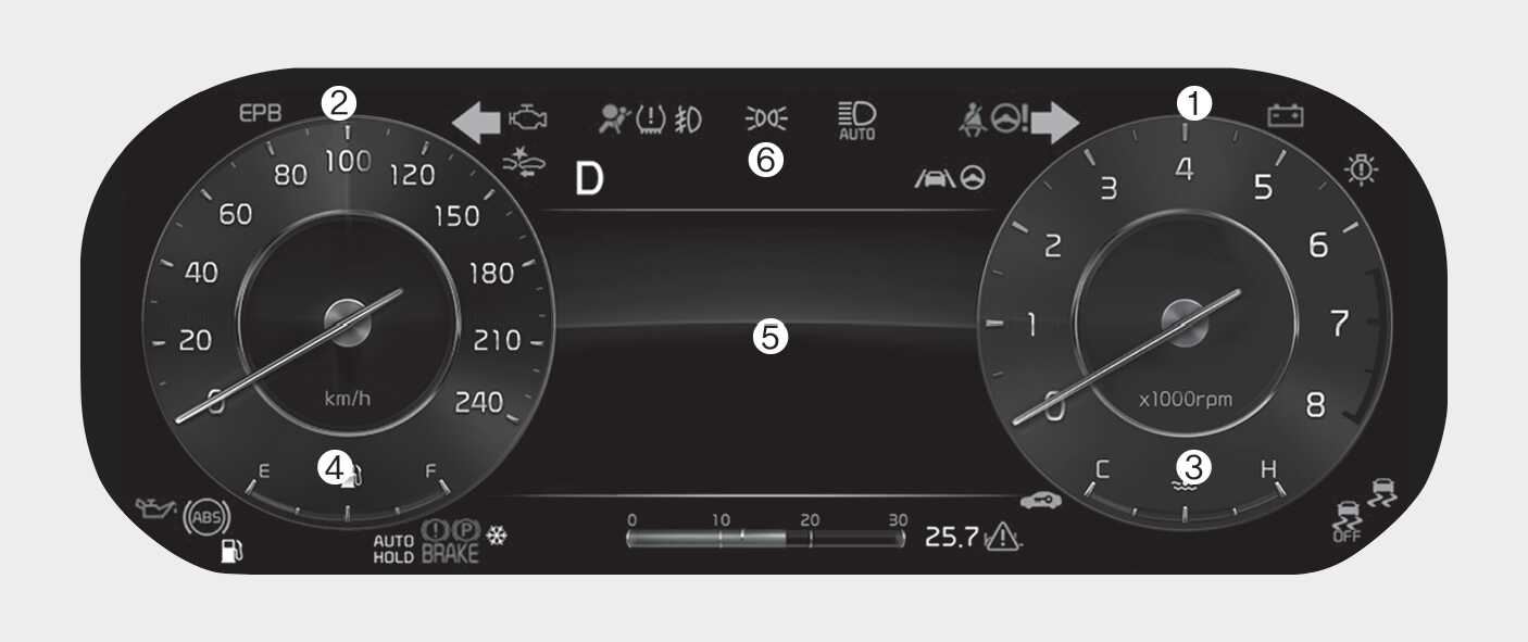 예시된 계기판 형상과 LCD화면의 내용은 실제 차량의 형상 및 내용과 상이할 수 있습니다.