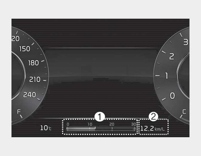 순간 연비(1)과 평균 연비(2)가 표시됩니다.