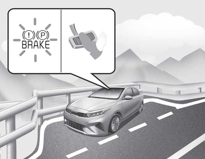 브레이크 경고등이 켜지면 페달이 딱딱해져 제동이 힘들 수 있습니다. 이 경우에는 평상시보다 강하게 밟아 정지해야 합니다.