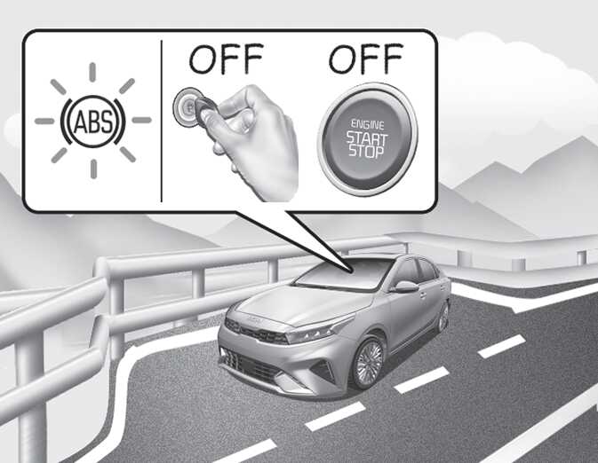약 3초 후에도 계속 경고등이 켜지면 ABS 장치에 이상이 발생한 것이므로 가까운 자사 직영 서비스센터 또는 서비스협력사에서 점검 및 정비를 받으십시오.