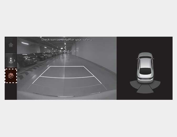 후방 모니터 작동 상태에서 화면 내 설정 버튼 (