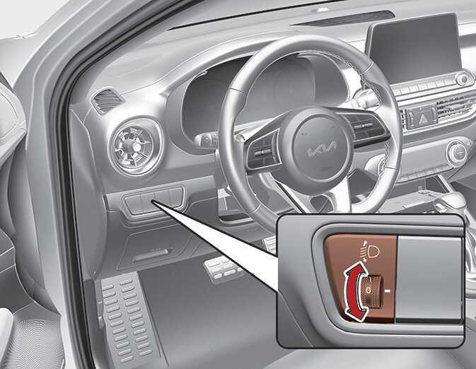 조절 장치의 숫자가 높을 수록 전조등 각도는 아래를 향하도록 되어있습니다.