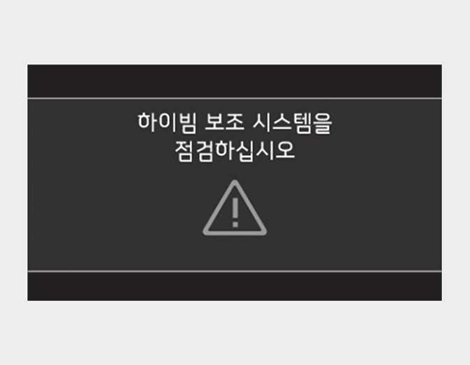 기능 이상 OJF048540 하이빔 보조에 이상이 있으면 계기판에 경고문을 표시(일정 시간 후 꺼짐)하고 통합 경고등( )이 켜집니다. 자사 직영 서비스센터나 서비스협력사에서 점검을 받으십시오.