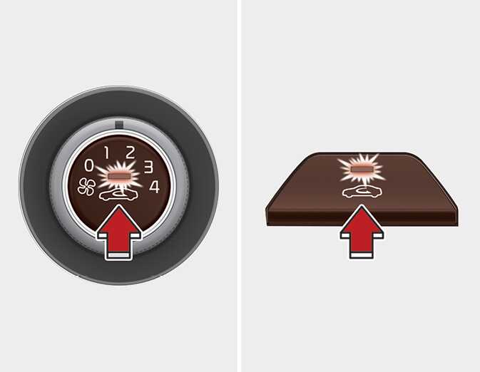 이 버튼을 누르고 장시간 난방을 하면 앞유리에 습기가 차게 되니 주의하십시오.