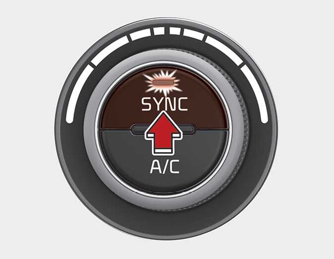 운전석 기준으로 온도를 동일하게 조절 할 때 「SYNC」 버튼을 눌러 버튼의 표시등이 켜지면 운전석 및 동승석의 온도 독립 조절 기능이 해제됩니다. OBD041317L 이때, 동승석의 온도가 운전석의 온도와 동일하게 전환됩니다.
