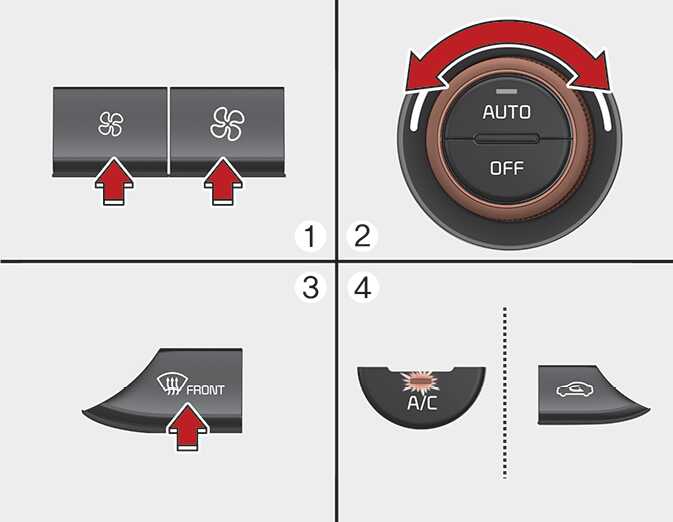 앞유리 서리제거 버튼을 누르십시오.