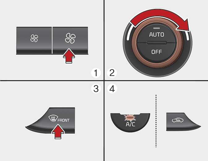 앞유리 서리 제거 선택 버튼을 누르십시오.