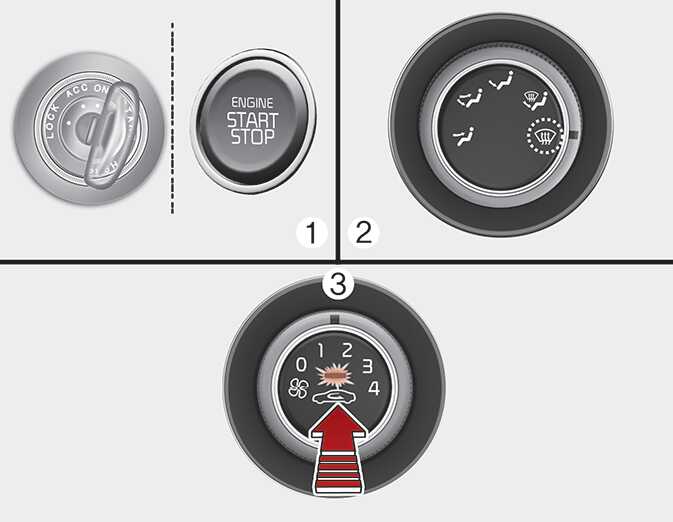 앞유리 서리제거 기능을 설정 후 10초 안에, 내/외 공기 선택(실내 순환) 버튼을 3초 이내에 5회 이상 누르십시오.