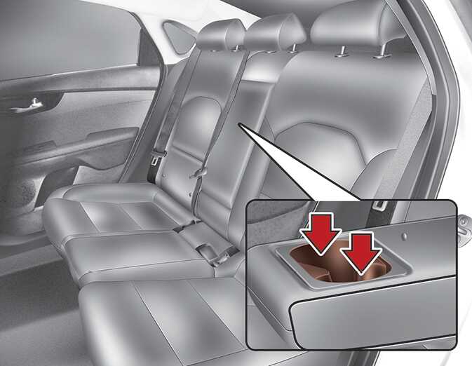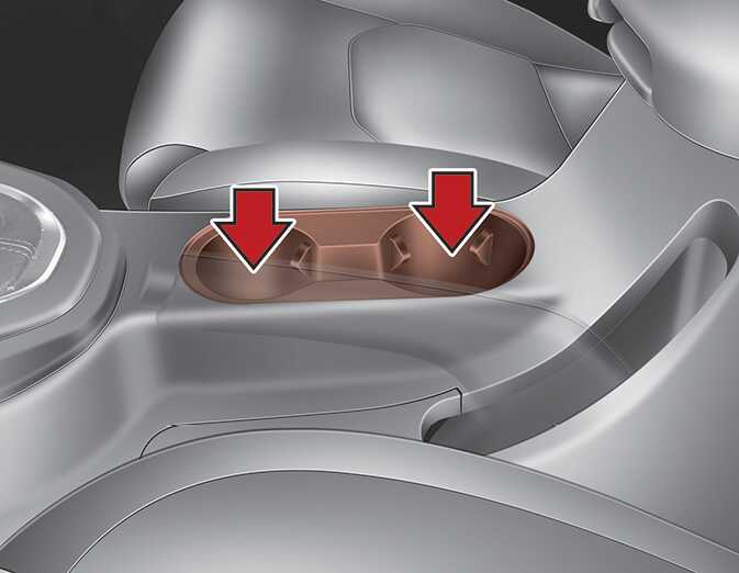 앞(또는 중앙) 좌석의 컵 홀더에 음료수와 같은 액체가 담긴 컵이나 캔 등을 놓아두면 급제동 시 전기 장치에 액체가 유입되어 전기적 장애가 발생할 수 있으므로 반드시 뚜껑을 닫아 놓으십시오.