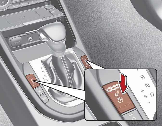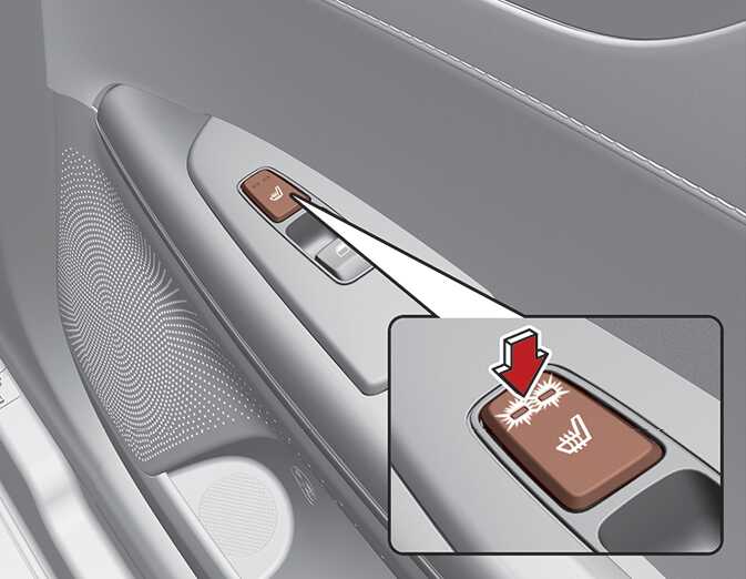 시동 상태에서 해당 열선 시트/통풍 시트 버튼을 누르면 강약조절 표시등이 켜져 사용 중임을 나타내고 해당 좌석이 따뜻해집니다.