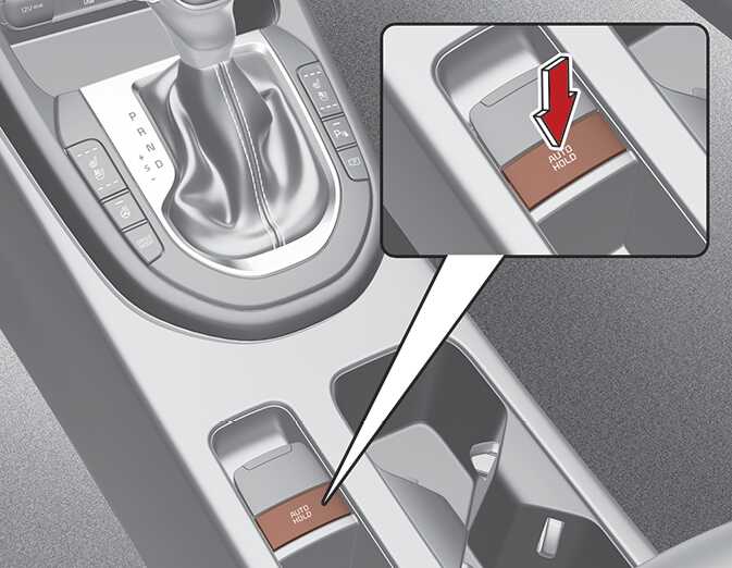 자동 정차 기능을 사용하지 않으려면 「AUTO HOLD」 스위치를 눌러 기능을 완전히 해제하십시오. 「AUTO HOLD」 표시등이 꺼집니다.