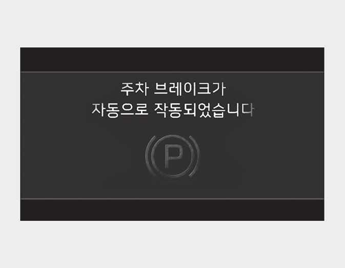 자동 정차 기능 작동 상태에서 전자식 파킹 브레이크(EPB) 체결 상태로 전환된 후 LCD 표시창에 경고 문구가 뜨고 경고음이 1회 울립니다.